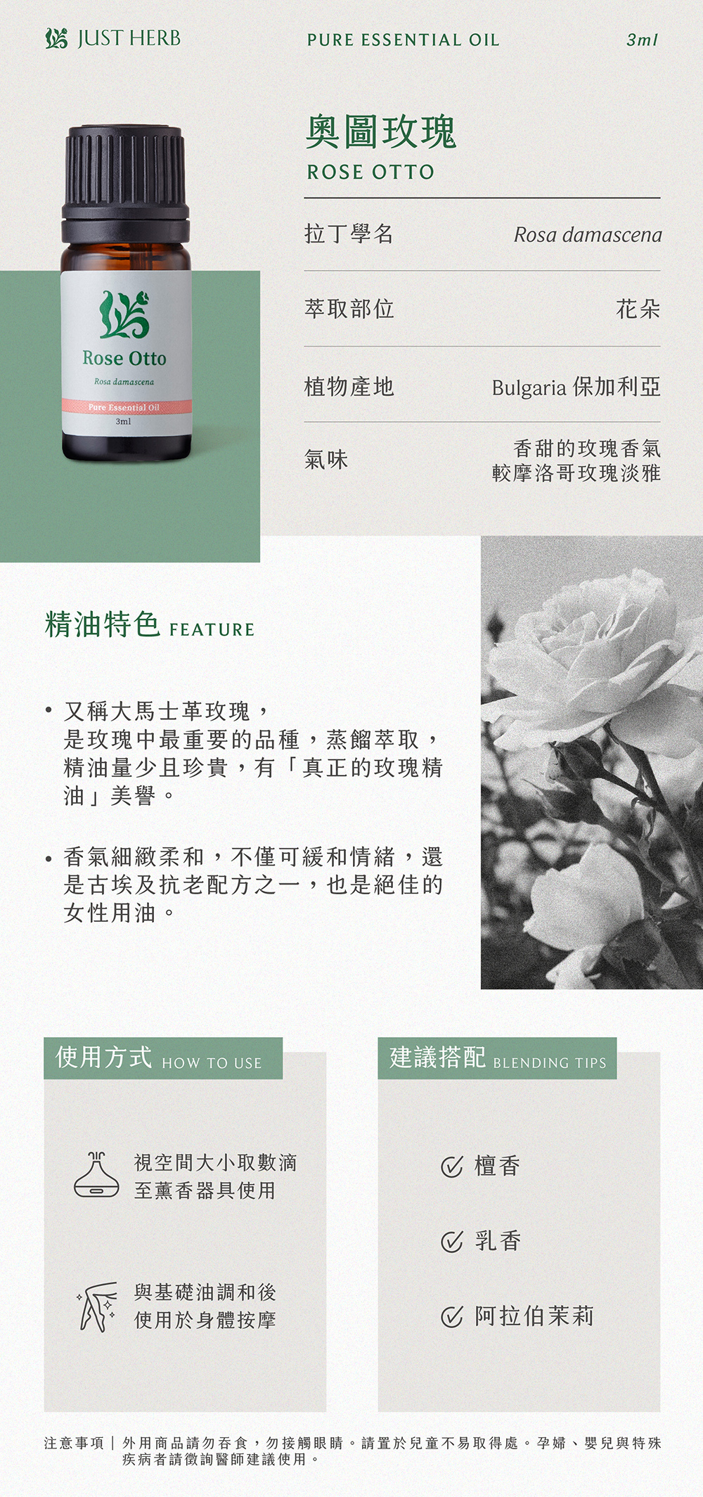 * 香氣細緻柔美,對女性極佳