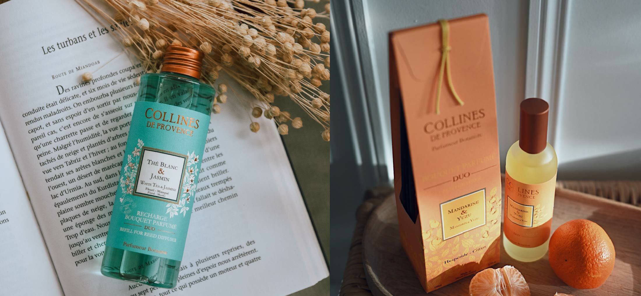 Collines de Provence香氣協奏系列 似咖啡澆上鮮奶、紅茶添點糖般,將香氣獨白配上動人和弦,完美譜出一曲餘音繚繞的香氣協奏。於2023年新上市兩款香調:白茶茉莉/甜橙西柚。溫潤白茶香帶一絲奶香回甘,茉莉、小蒼蘭的白花香交織一日好心情。酸鮮的西柚、葡萄柚果香氣,營造出輕快、愉悅空間氛圍。