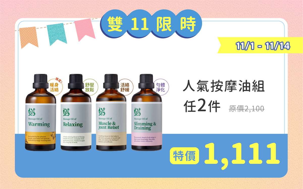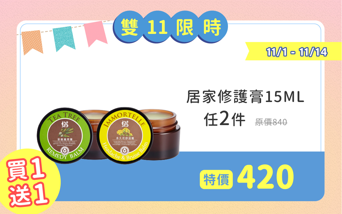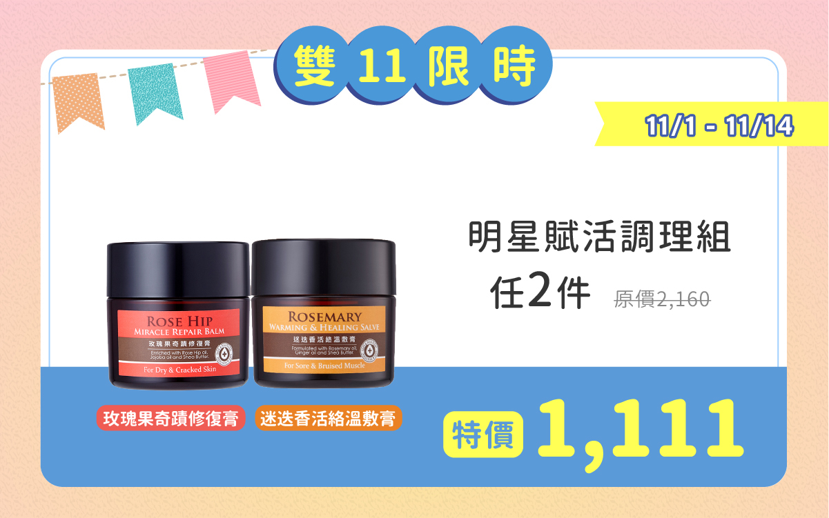 ■11/1-11/14 官網獨家 雙11狂歡 兩件五折(買一送一) !