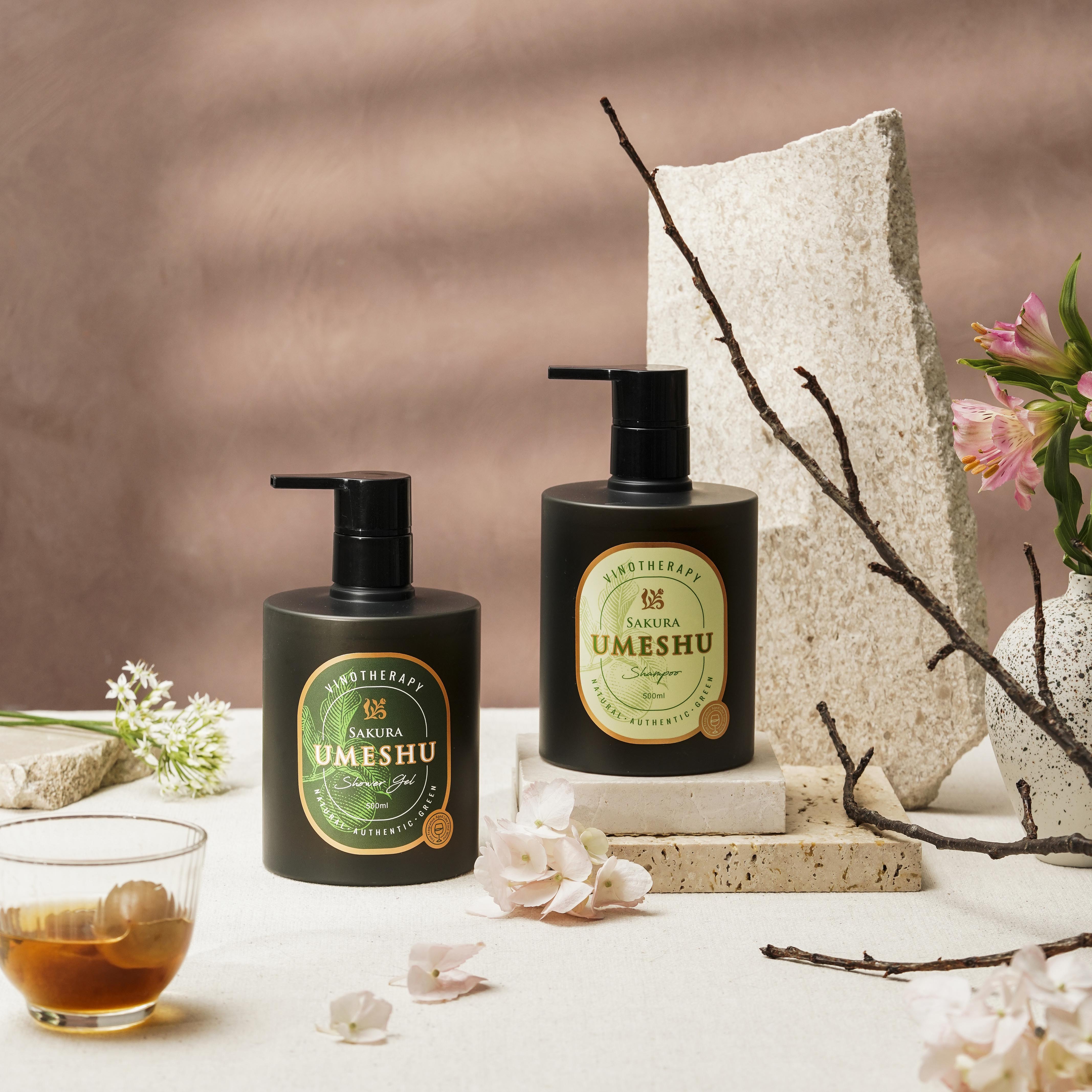 蘊含梅果實、金縷梅並以綠色胺基酸為基底溫和洗淨、收斂緊緻肌膚,並添加咖啡因、七葉樹等複方控油精華,在甘甜梅酒與粉嫩櫻花香中,打造油水平衡的美好肌底。強健髮根,並添加咖啡因、七葉樹等複方精華控油調理,髮絲飄逸粉嫩櫻花梅酒香。