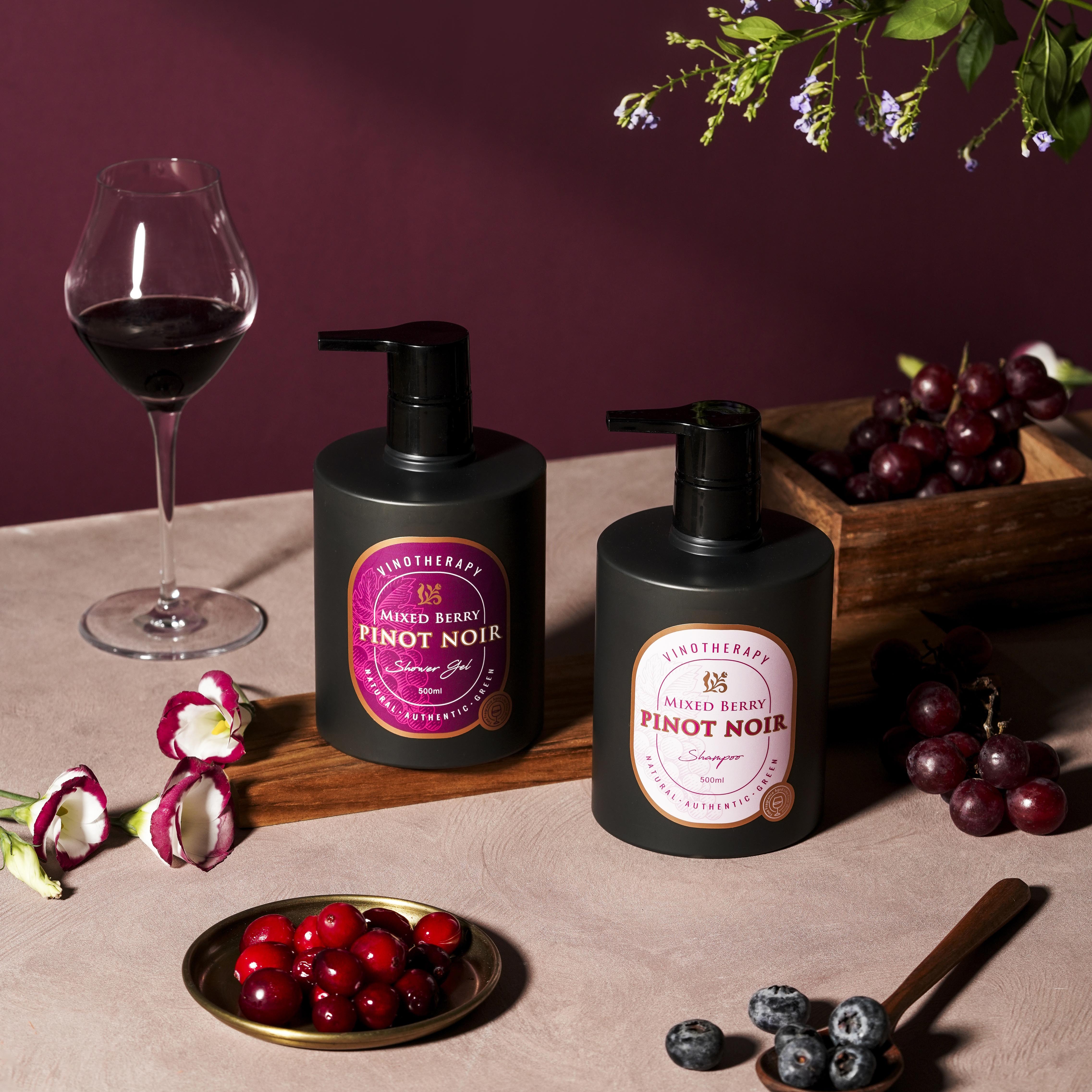 添加釀酒葡萄、迷迭香和紅石榴萃取等抗氧化精華並以綠色胺基酸為基底溫和洗淨,沐浴在細緻紅葡萄酒香中賦活肌膚,與時光逆行。活絡滋養頭皮,散發出莓果、玫瑰和紫羅蘭的迷人酒香。
