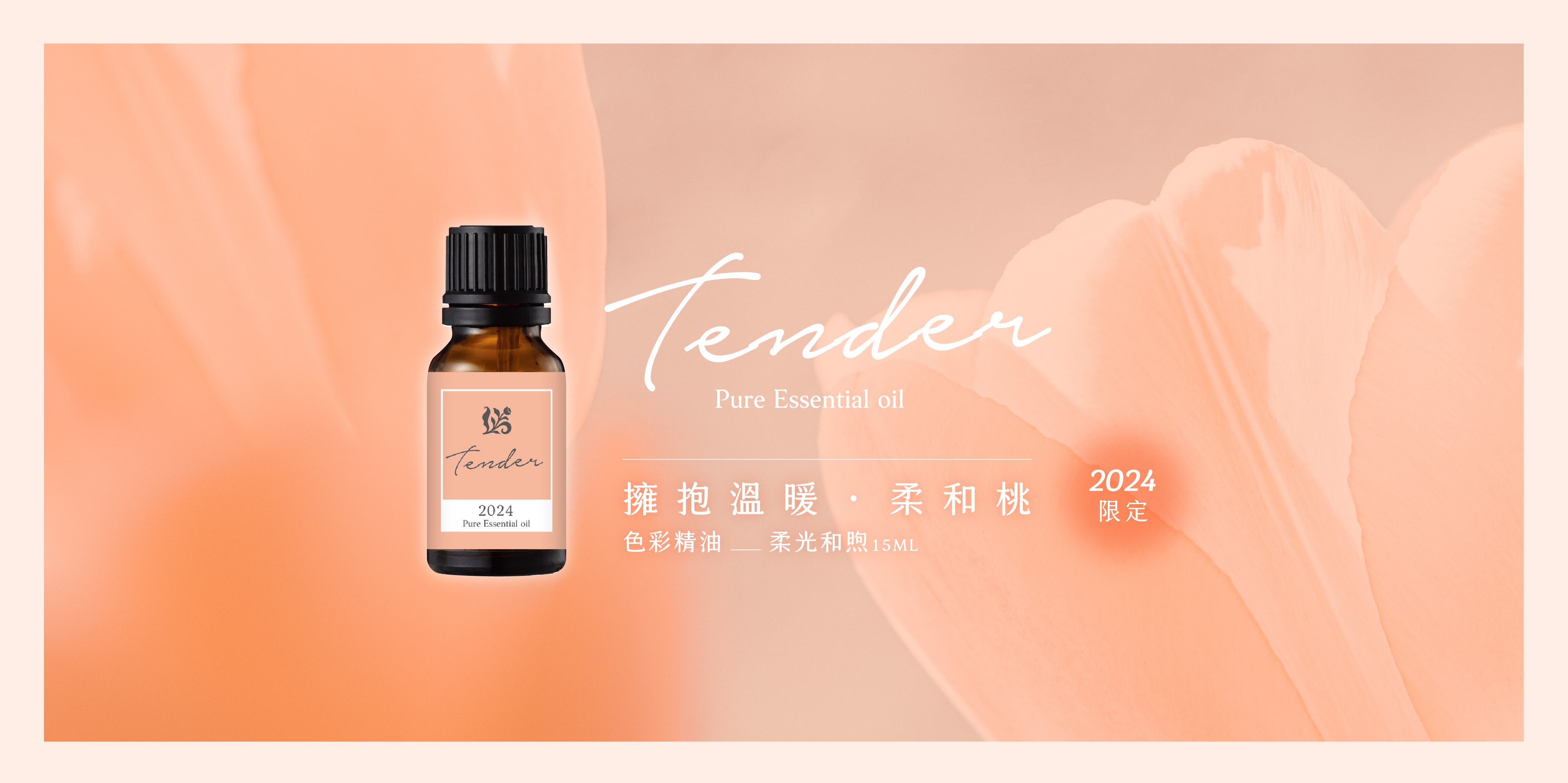 2024年度色彩限定精油上市!「Peach Fuzz 柔和桃」 帶著浪漫詩意,象徵真誠友善與溫柔包容。恬靜紅橘和粉紅葡萄柚帶著輕快輕盈的舒適感,玫瑰草與薰衣草的草本花香讓生命回歸平衡自在,在忙亂生活中沉浸於漫漫微光的寧靜氛圍。
