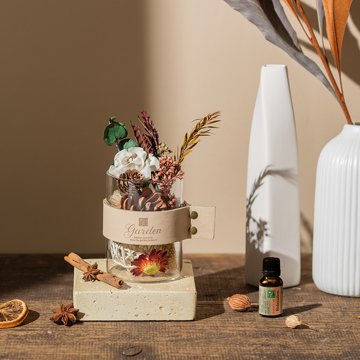 喜歡乾燥花的你不要錯過,這款魔法花園寶盒很值得收藏! 滴3~4滴精油於藤枝或籐球上! 就可以打造屬於自己的香氣花園。