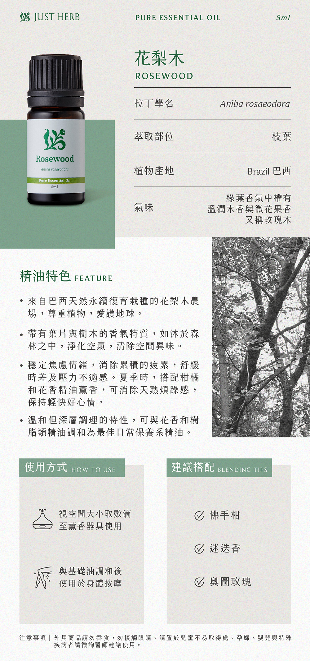 *與花香和樹脂類精油調和可作為日常保養配方。