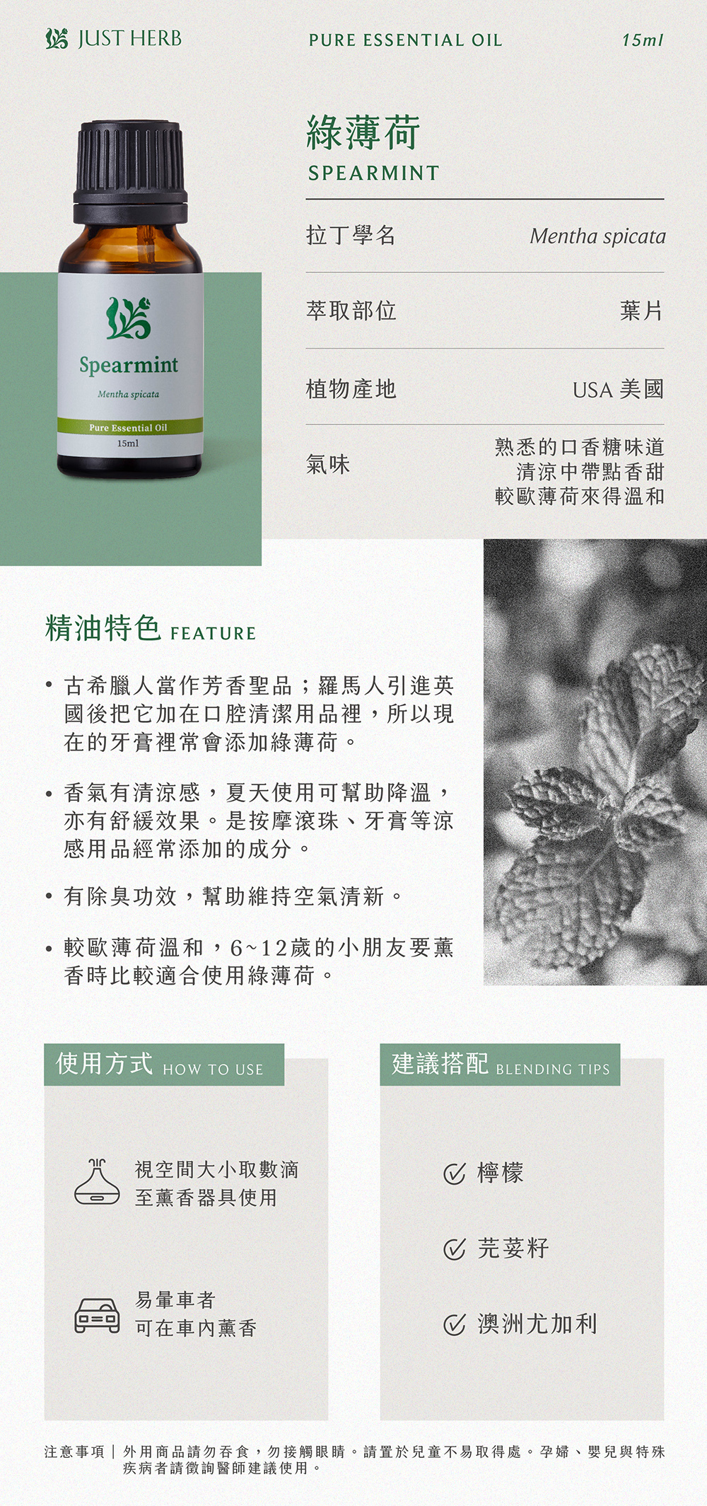 * 較歐薄荷溫和,6~12歲的小朋友要薰香時比較適合使用綠薄荷。